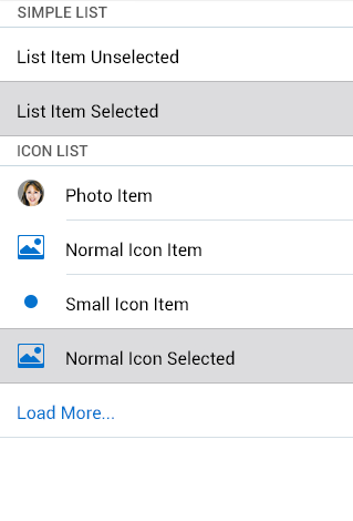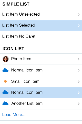 - Fetching More Items: When scrolling down the list or tapping the "Load More..." link, the list loads additional list items. In such case, an indicator appears to indicate that.