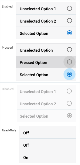 - Read-Only: The selected item is bold text.