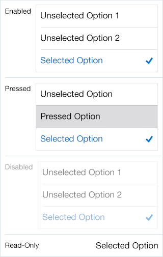 - Checkmark: iOS displays a checkmark when selected.