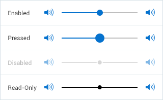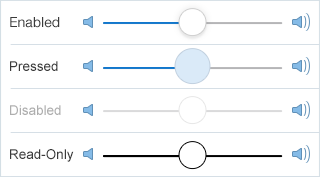 - Press: When the user presses the slider, the thumb appears in a pressed state.