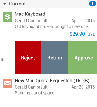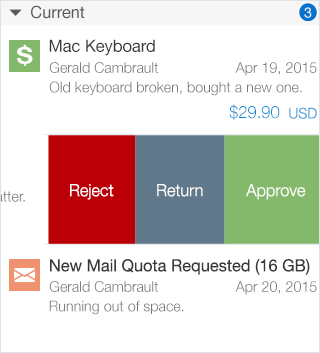 The Swipe to Reveal component allows a user to drag on the left or right side of a List Item to reveal an area with additional content or actions. This is typically used with a List View, but could be used with other components.