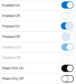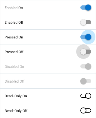 - Switches should be shown as read-only when data is displayed in a read-only page, such as a printable page, and a value has been selected.