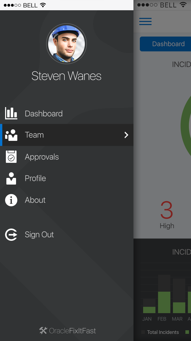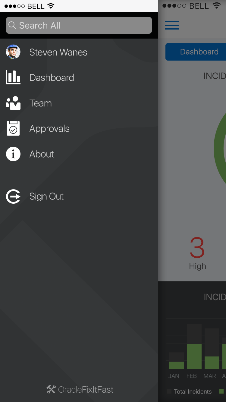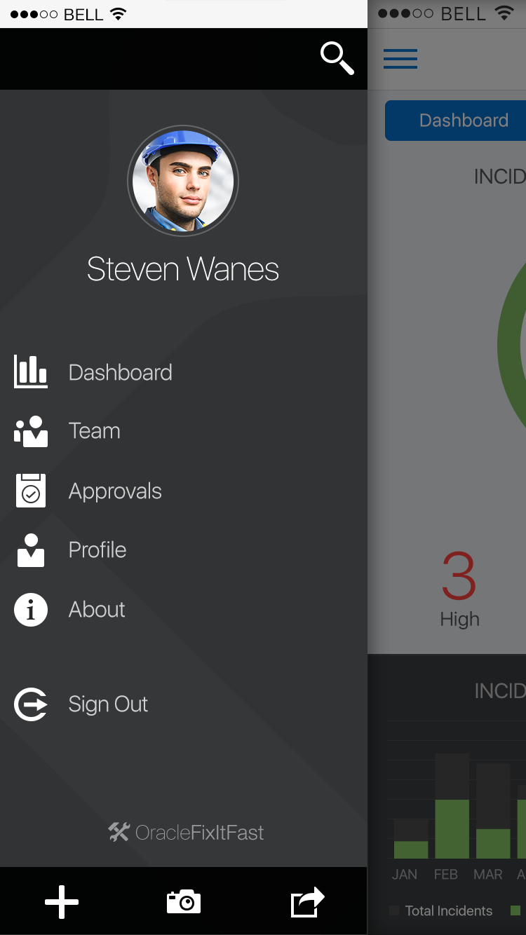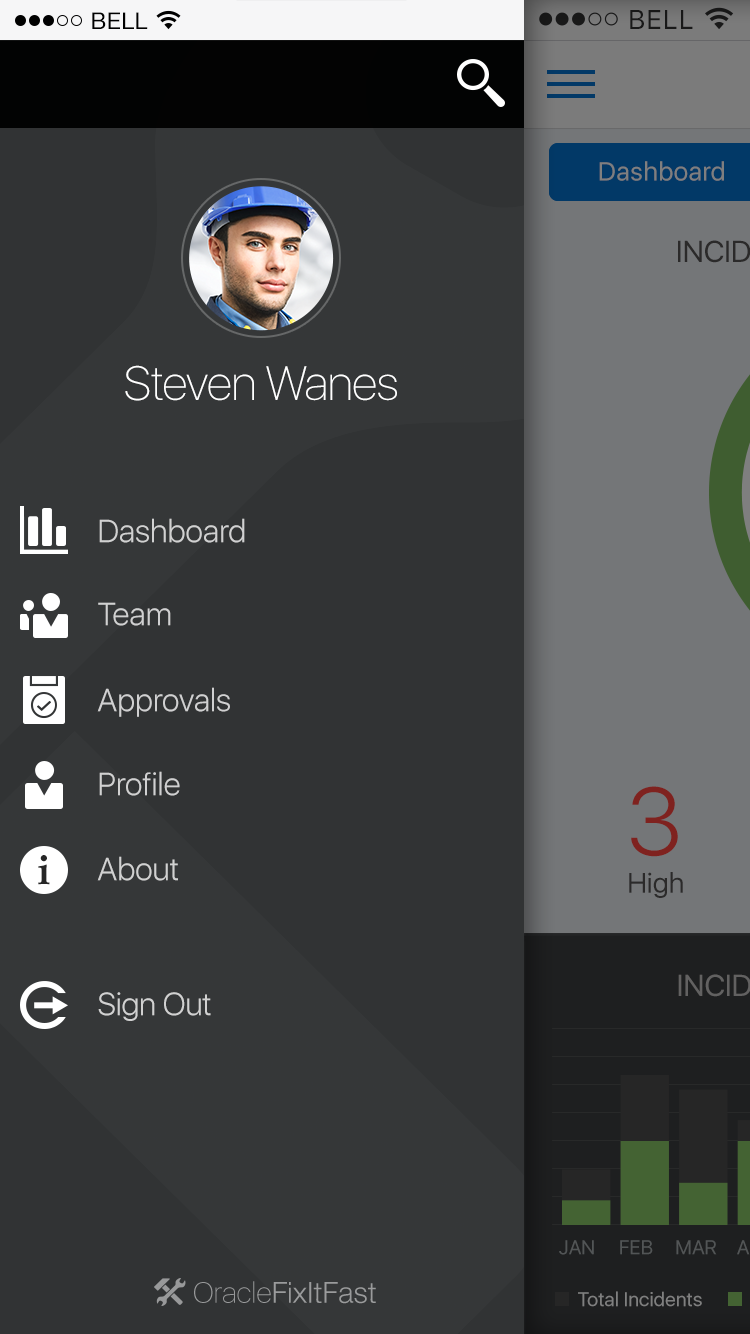 The Drawer pattern allows the user to open and/or switch between different application features. A Drawer primarily displays a menu of navigation options, which can show additional features including: search, profile, notifications, branding, etc.