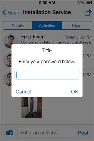- Dialog: The app is dimmed before the alert appears.